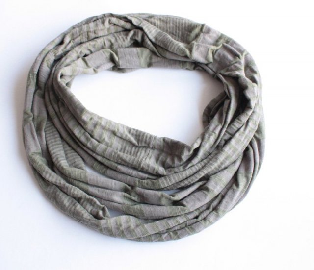 Niezwykle oryginalny komin o bardzo dużym obwodzie, dzięki czemu można owijać się nim na różne sposoby, wiele razy. Materiał jest miękki, miły w dotyku.