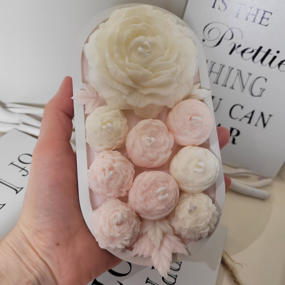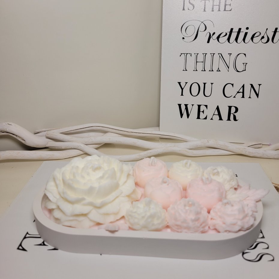 Wyjątkowy zestaw świec sojowych wykonanych ręcznie z miłością i dbałością o szczegóły. Głównym elementem kompozycji jest duża świeca w kształcie piwonii, symbol delikatności i wyrafinowanego piękna. Wyjątkowy zapach, subtelny design i gipsowa podstawka sprawiają, że ten zestaw to nie tylko praktyczny, ale i stylowy element dekoracyjny. Każda świeca to małe dzieło sztuki, które wypełni Twój dom ciepłem i przytulnością. Idealny prezent dla tych, którzy cenią piękno i indywidualność!