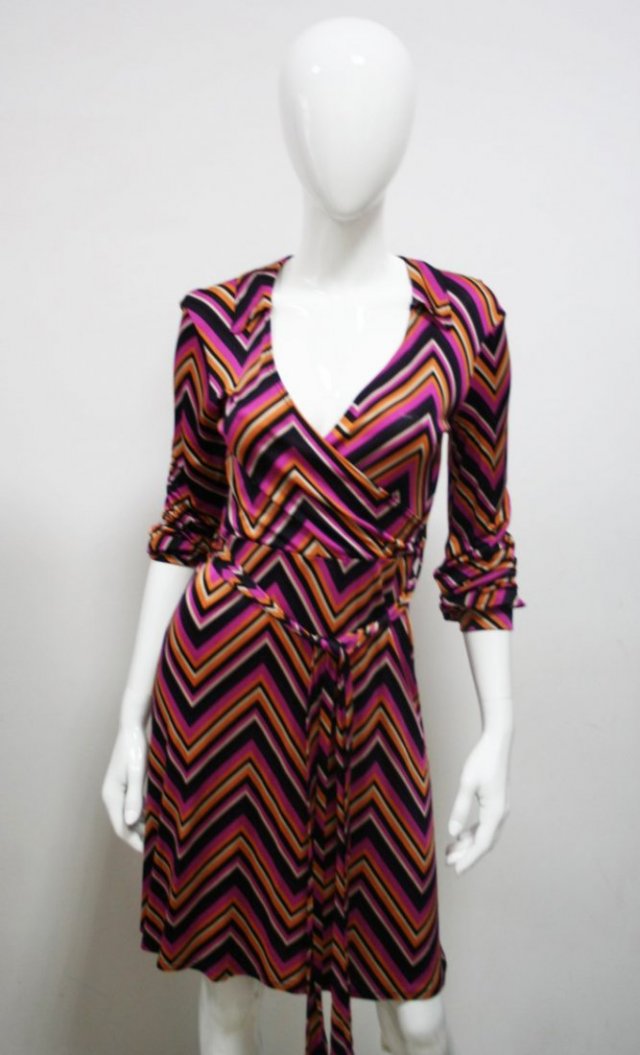 Kolorowa, kopertowa sukienka w stylu retro. Kołnierzyk. Sukienka z paseczkiem. Elastyczna . Przy rękawach mankiety.