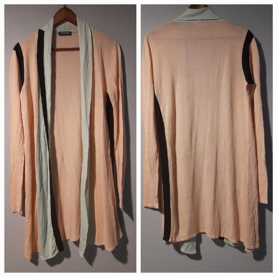 Dwuczęściowy zestaw bluzka bez rękawów i kardigan narzutka, nowy bez papierowej metki, len z wiskozą, rozmiar z metki 40, renomowana niemiecka marka