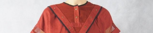 Ruda sukienka z dawnych lat z Istambułu. Marki ALBAY KONFEKSiYON. Siateczkowe kieszonki po bokach. Materiał to chyba bawełna. Krój iście designerski, i współczesny projektant by się nie powstydził.