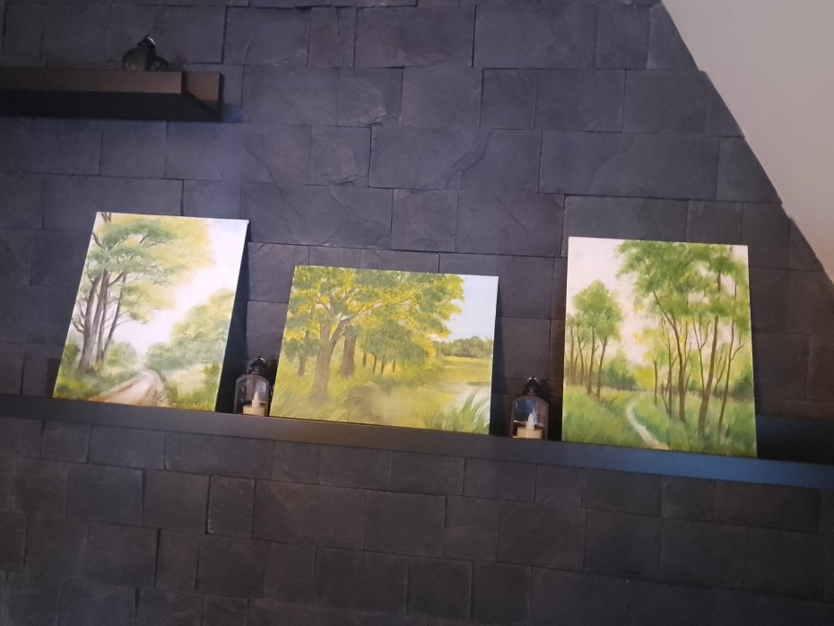 Jeden niepowtarzalny zestaw - LEŚNE ŚCIEŻKI. Obrazy tworzą spójną serię kolorystyczną, która przepięknie wypełni i udekoruje ściany salonu, sypialni, czy biura. Idealny prezent dla każdej kobiety i nie tylko.