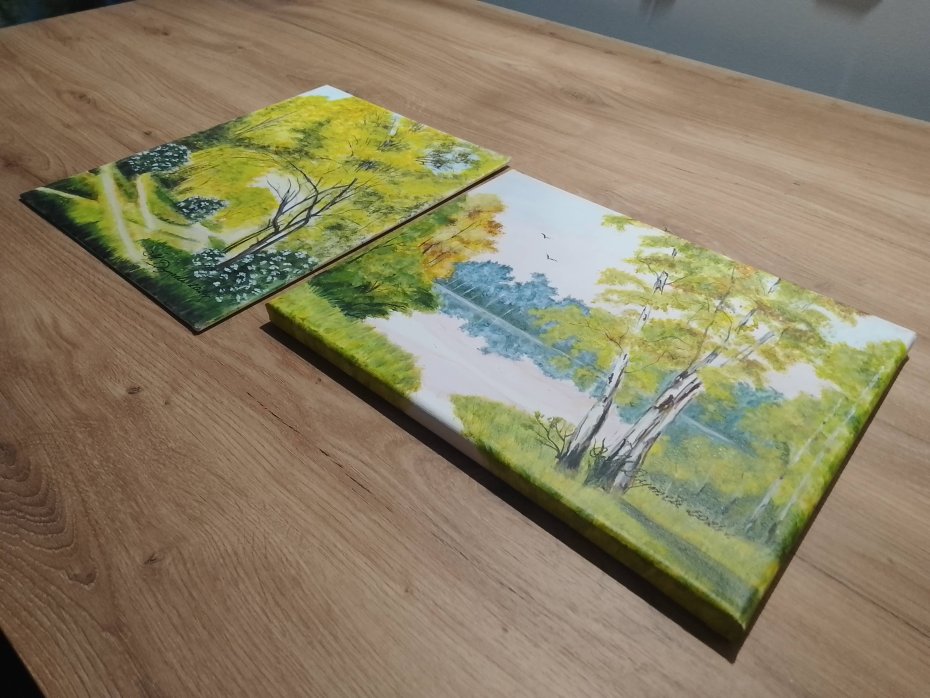 -Rodzaj podłoża: 1x Płótno napinane na blejtram + 1x Twarde podobrazie (na dykcie)