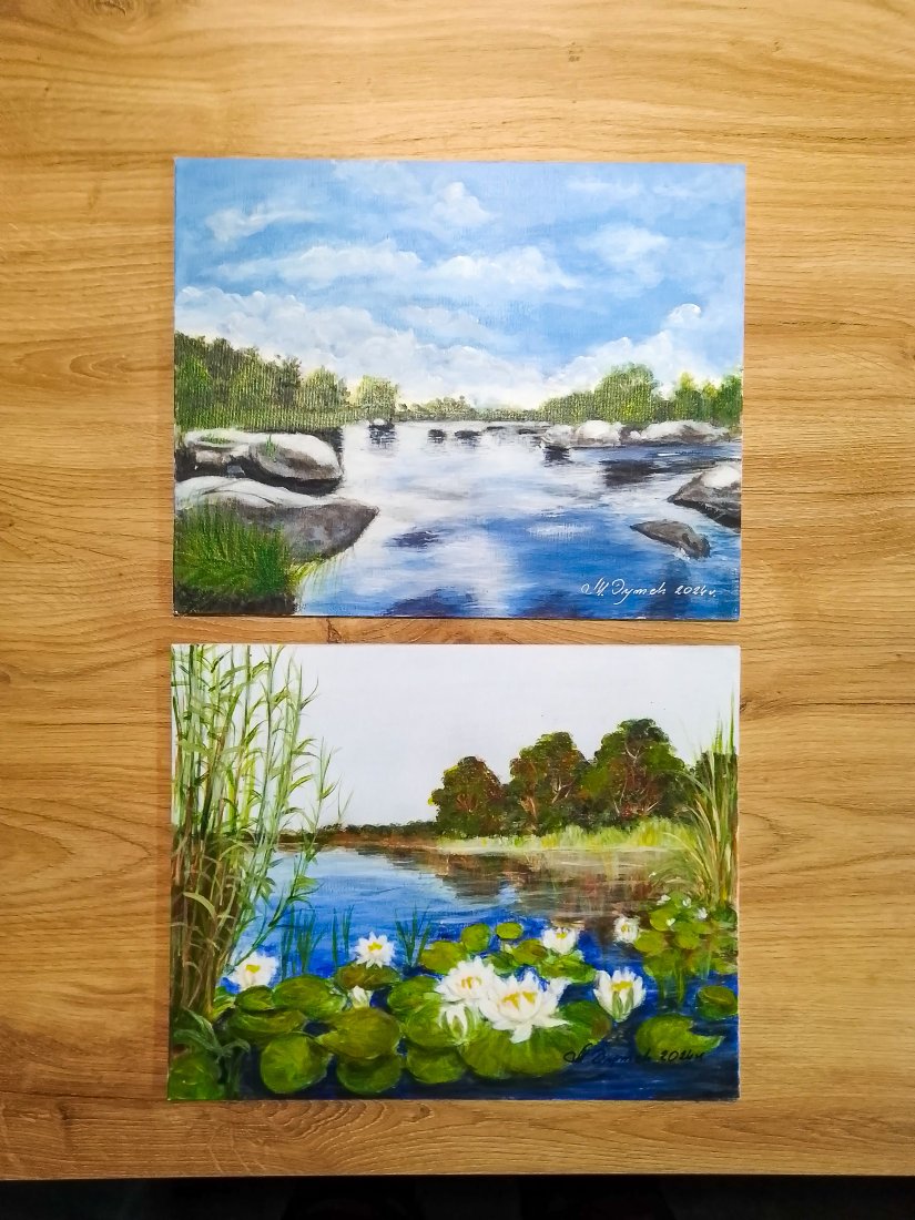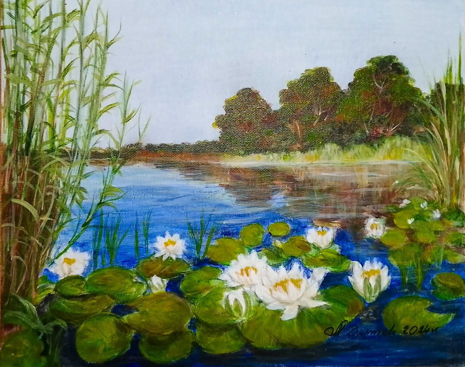 -Tematyka: Lilie wodne, rzeka, letni krajobraz