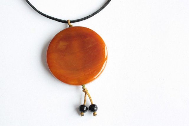 Piękny wisiorek na czarnym rzemyku. Przypomina kamień naturalny, ale prawdopodobnie to syntetyk.