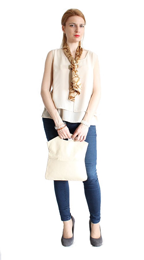 Elegancka, prosta, dwuwarstwowa bluzka w jasnym odcieniu beżu skandynawskiej marki Jensen.