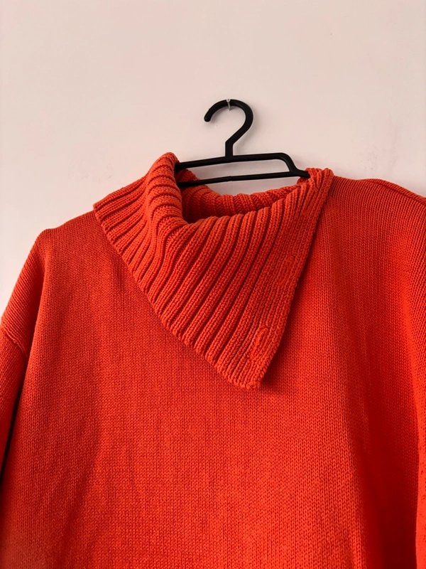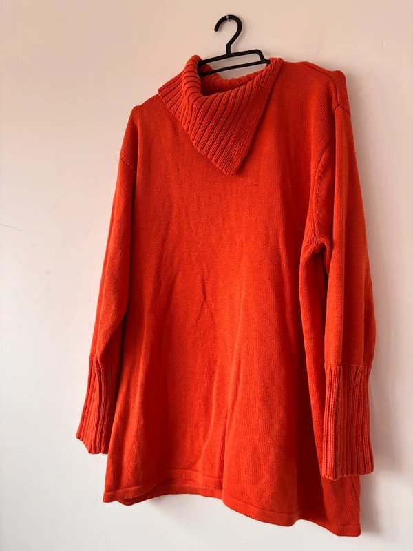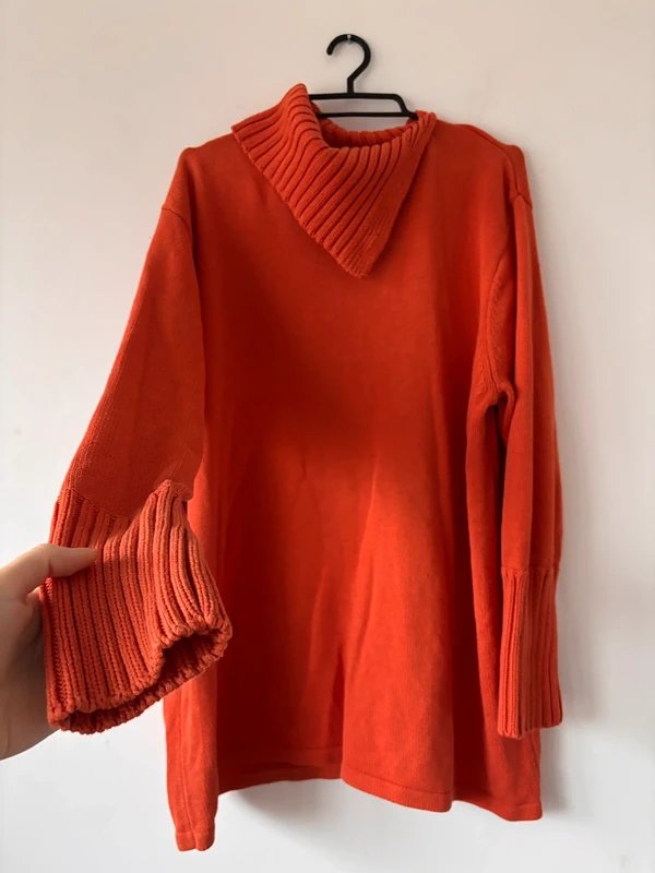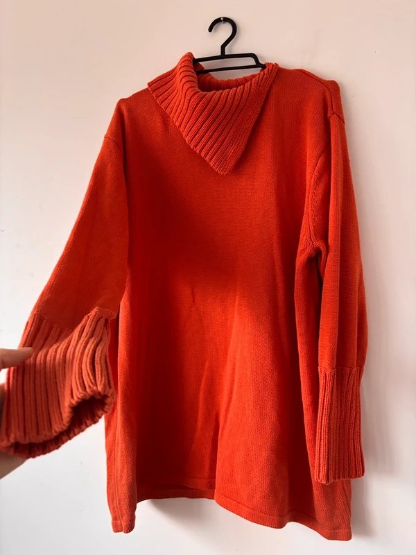 Sweater, orange, tunic, turtleneck, cowlneck, oversized, longsweater, ribbed, cuff, terracotta, pumpkin, warm, autumn, winter, knitwear, statement