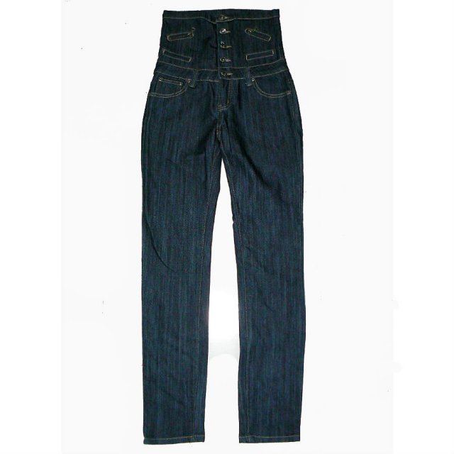 Ciemno granatowe jeansy marki R-display z bardzo wysokim, gorsetowym stanem.