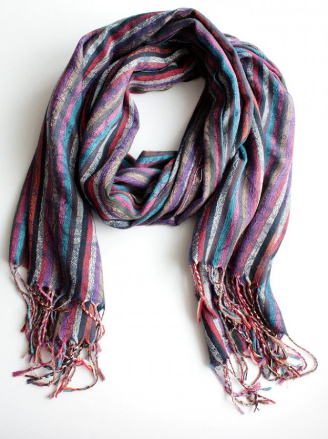 Dodaj swojej stylizacji szczyptę koloru i otul się tym miękkim, wytłaczanym szalem w wielobarwne pasy. Szal będzie doskonałym uzupełnieniem kurtki czy płaszcza, jak również elementem nadającym charakteru nieformalnej stylizacji.