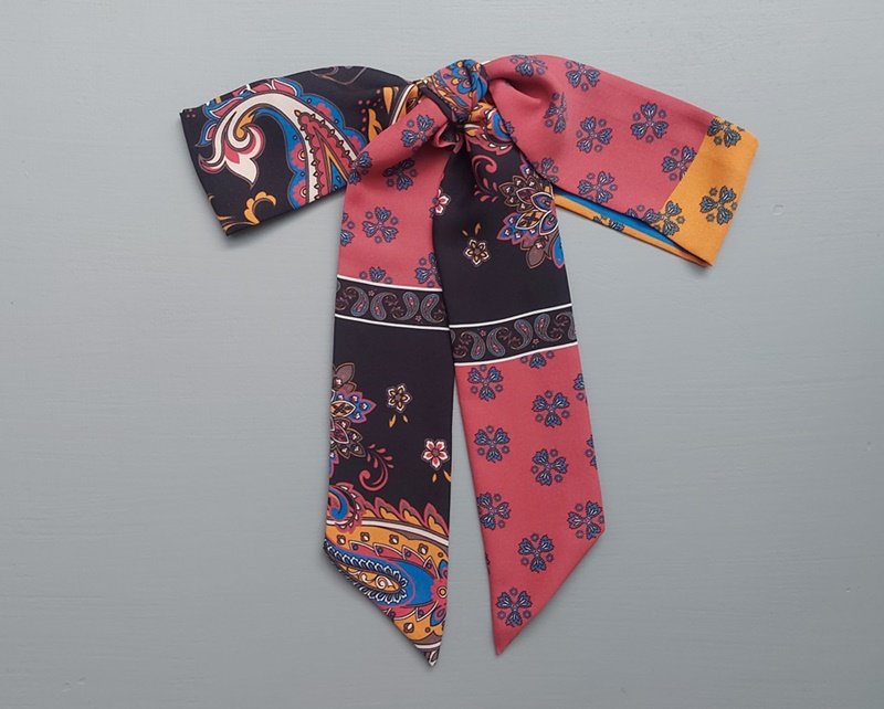 Apaszka typu Twilly to ponadczasowy dodatek, który stał się symbolem jednej z najbardziej renomowanych marek modowych. Wykonana ręcznie, ciekawi oryginalnym wzorem, w którym łączą się kolory: czarny, biały, niebieski oraz odcienie pomarańczowego. Stanowi subtelny akcent, który wyróżni każdą stylizację. Doskonale komponuje się z białą koszulą, a także świetnie uzupełnia czerń i pomarańczowe odcienie oraz nadaje elegancji dżinsowej koszuli. To wszechstronny dodatek modowy, który podkreśli zarówno codzienne, jak i wieczorowe stylizacje.