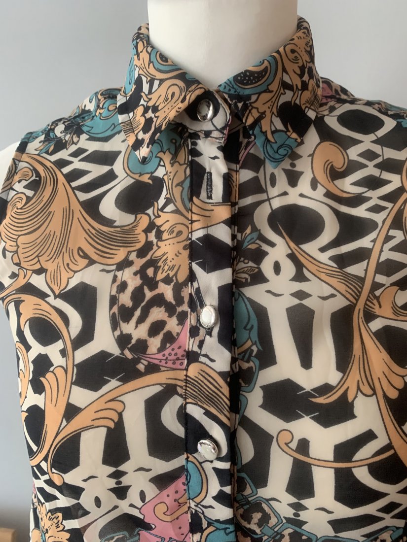 Bardzo ciekawa bluzka bez rękawów. Mix wzorów.