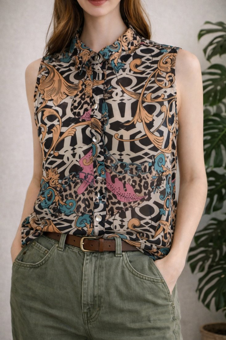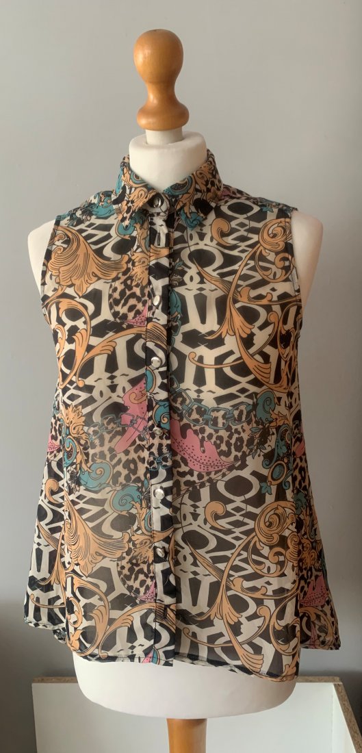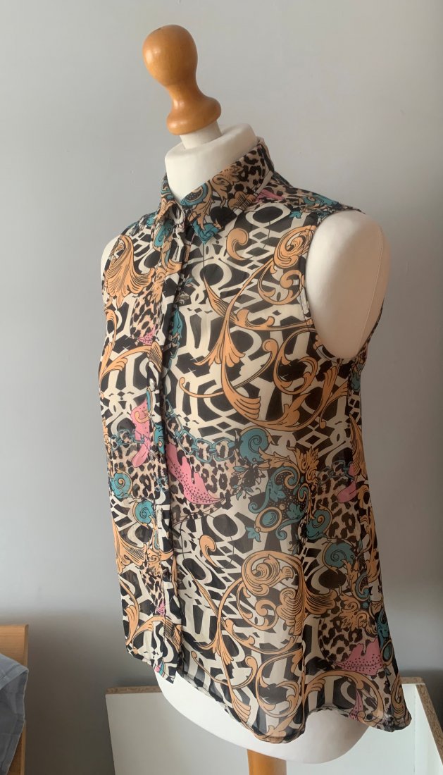 Bardzo ciekawa bluzka bez rękawów. Mix wzorów.