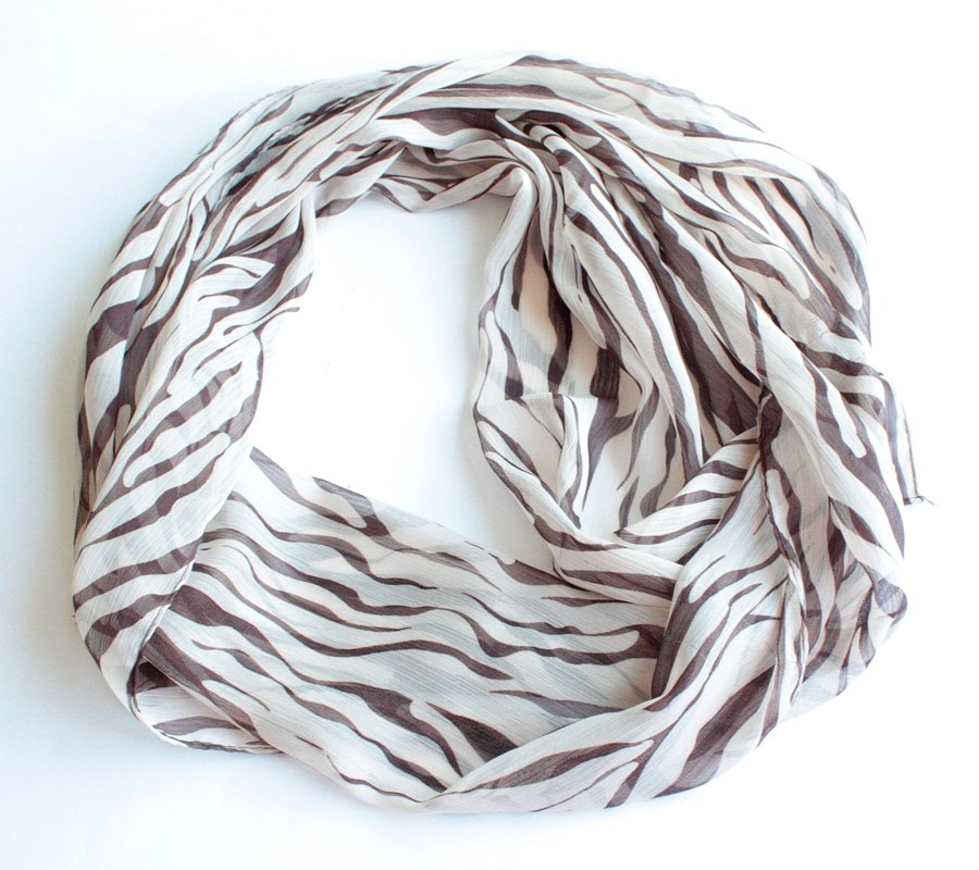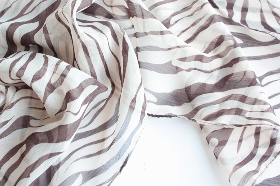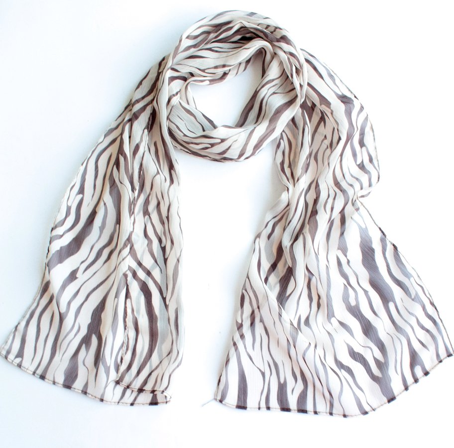 Zwiewny szal w ponadczasowe wzory. Materiał to prawdopodobnie wiskoza lub polyester.