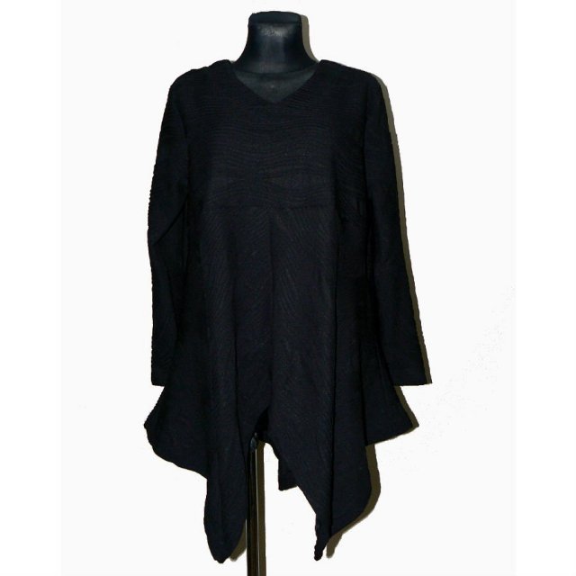 Tunika o geometrycznej formie, asymetrycznie skrojona.