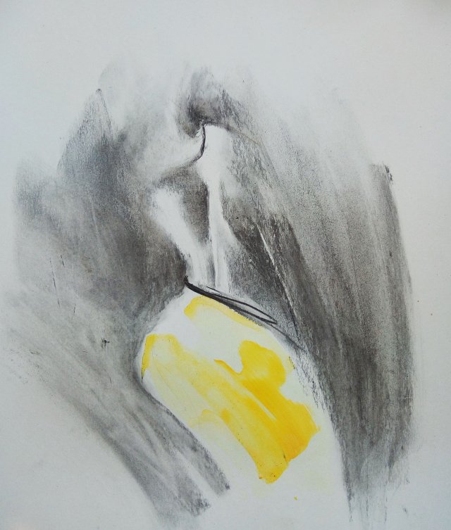 Obrazek autorski w technice węgla i intensywnej farby.