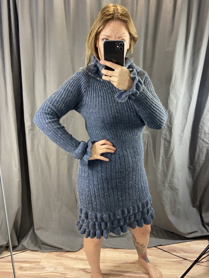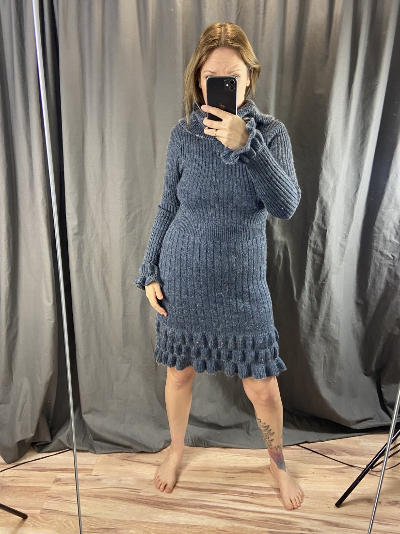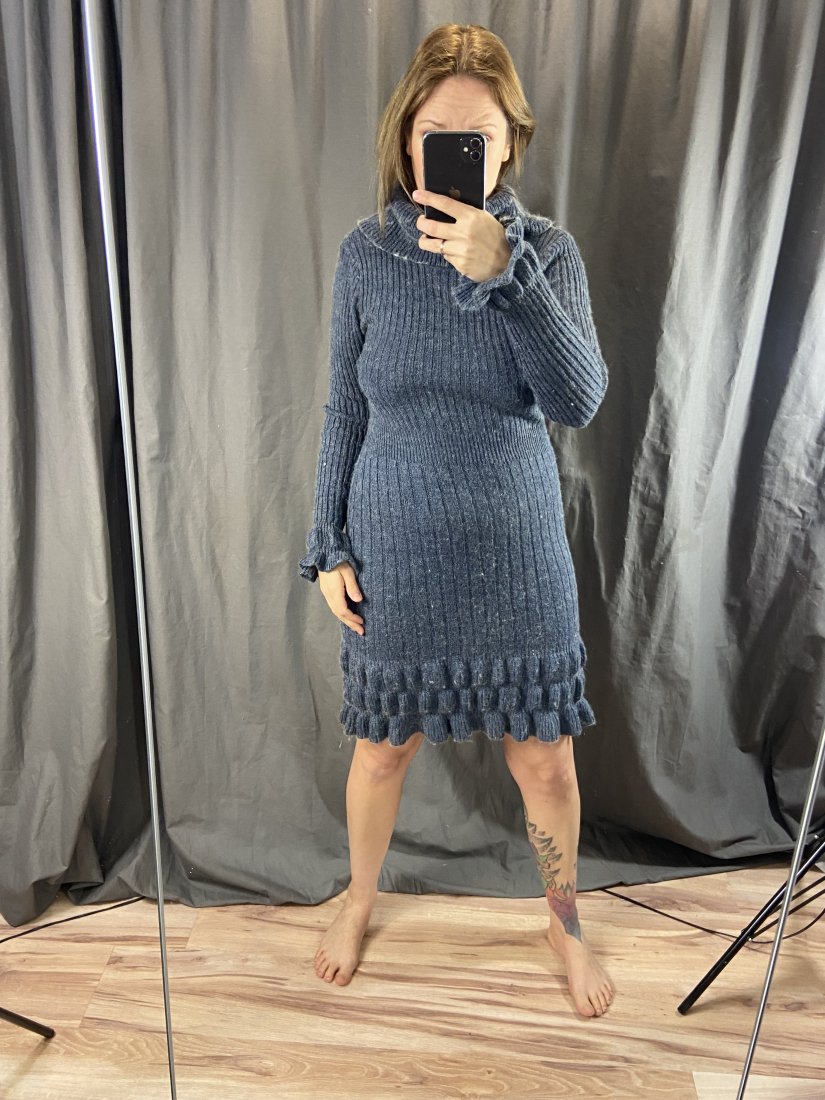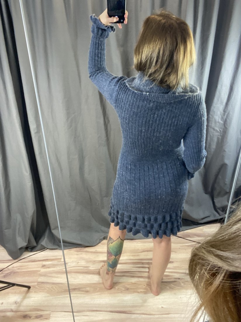 Mięciutka sukienka z akrylu 70%, wełny 20%, alpaki 10%.