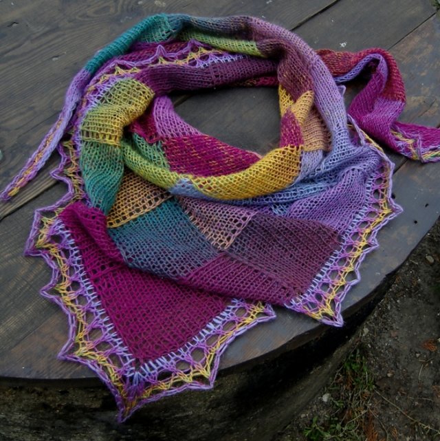 Niebanalna chusta, delikatna i zwiewna,która może służyć cały rok: jako ochrona przed chłodem lub element stylizacji. Wykonana ręcznie na drutach . Niestety zdjęcia nie oddają delikatności, miękkości i pięknych niuansów kolorystycznych. Wymiary: ok. 200 (najdłuższy bok) x ok. 90 (wysokość trójkąta) cm. Skład: 75% wełna, 25% poliamid. Polecam serdecznie. Dużo ładniejsza, niż na zdjęciach - cudownie optymistyczne kolory!