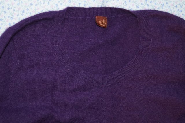 Przyjemny sweterek w rozmiarze S marki Molly Anne w twarzowym kolorze śliwkowo-purpurowym ( na zdjęciu niestety bardziej fioletowy), dekolt półokrągły, delikatnie taliowany, puszysty i delikatny