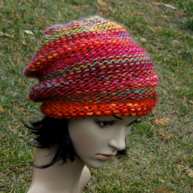 Bardzo ciepła, gruba, mięsista ( wykonana niezbyt luźno, aby nie hulał po niej wiatr :) ) i przyjemna w dotyku czapa wykonana ręcznie na drutach z rewelacyjnej włóczki prod. hiszpańskiej ( 53% virgin wool, 47% akryl), w bajecznych kolorach. Czapka jest dwustronna i bezszwowa, dzięki czemu można dowolnie układać kolory przy twarzy. Rozmiar czapki : obwód od 55 do 57 cm, wysokość ok. 28 cm. Bardzo twarzowa. Dużo ładniejsza, niż na zdjęciach. Polecam.