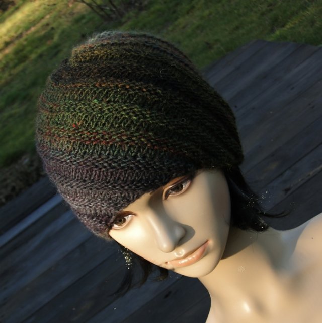 Czapa wykonana ręcznie na drutach z rewelacyjnej włóczki prod. włoskiej ( 42% virgin wool, 20 % alpaka, 38% akryl), lekka, ciepła i bardzo przyjemna w dotyku. Świetnie przenikające się odcienie zieleni, fioletu, karmelu ! Rozmiar czapki : obwód od 54 do 57 cm, wysokość ok. 22 cm. Polecam serdecznie.