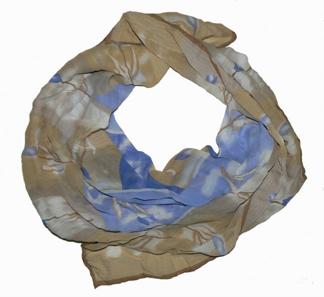 Lekka jak piórko chusta w pastelowych kolorach. Tkanina nie jest gładka jak większość jedwabnych rzeczy, ma luźniejszy splot, jakby przędza.