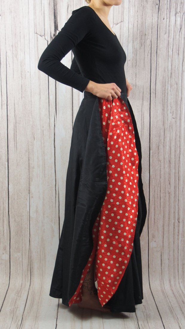 Cudowna spódnica z podszewką w groszki (można w sumie nosić stronę groszkową też). Dolna część z koła.