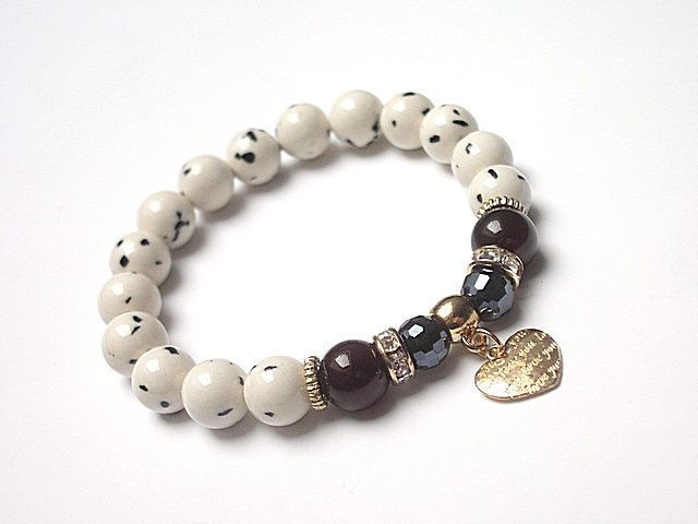 PROJEKT AUTORSKI. WŁASNOŚĆ KI-KA. KOPIOWANIE ZABRONIONE. Bransoletka wykonana z kuleczek marmur [10mm],jadeitów [10mm], kryształków [8mm], oraz elementów metalowych w kolorze złota. Pasują na nadgarstek 16-17cm. Biżuteria ozdobnie zapakowana. Istnieje możliwość wykonania modelu na inny nadgarstek - wcześniej prosimy o kontakt.