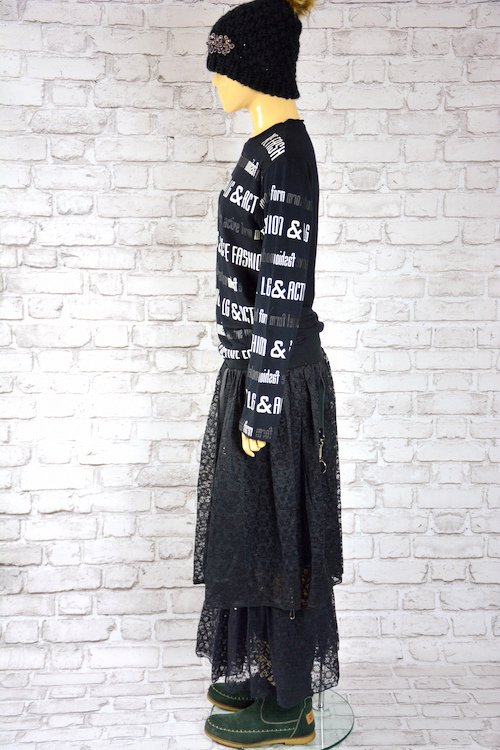 Świetna czarna bawełniana bluzka z napisami, tył gładki czarny.