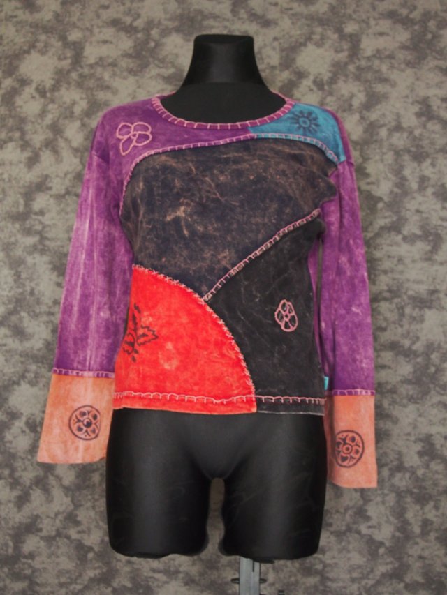 Stan: bardzo dobry - bluzka jest cieniowana i barwiona/postarzana więc nie widać na niej za bardzo zużycia, nie jest zmechacona