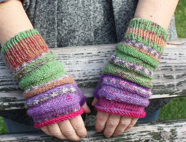 Mitenki wykonane w radosnych kolorach :amarant,fiolet,beż,zieleń