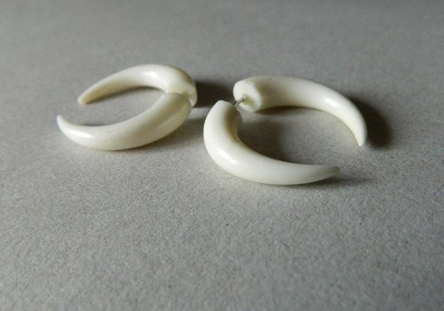 Kolczyki z rogu naturalnego - niby tunele, ecru. Praktycznie nowe.