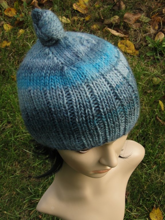 Czapa wykonana ręcznie na drutach z włóczki prod. francuskiej w odcieniach błękitu, szarości, turkusu ( 53% wełna, 47% akryl), ciepła i bardzo miękka, bezszwowa. Rozmiar czapki : obwód od 54 do 57 cm, wysokość bez supełka ok. 21 cm. Bardzo twarzowa. Polecam.