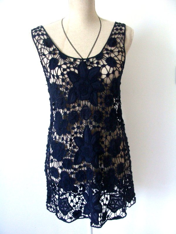 Cudna bluzka z bawełnianej gipiurowej koronki w granatowym kolorze. Piękny kwiatowy wzór połączony z haftem.
