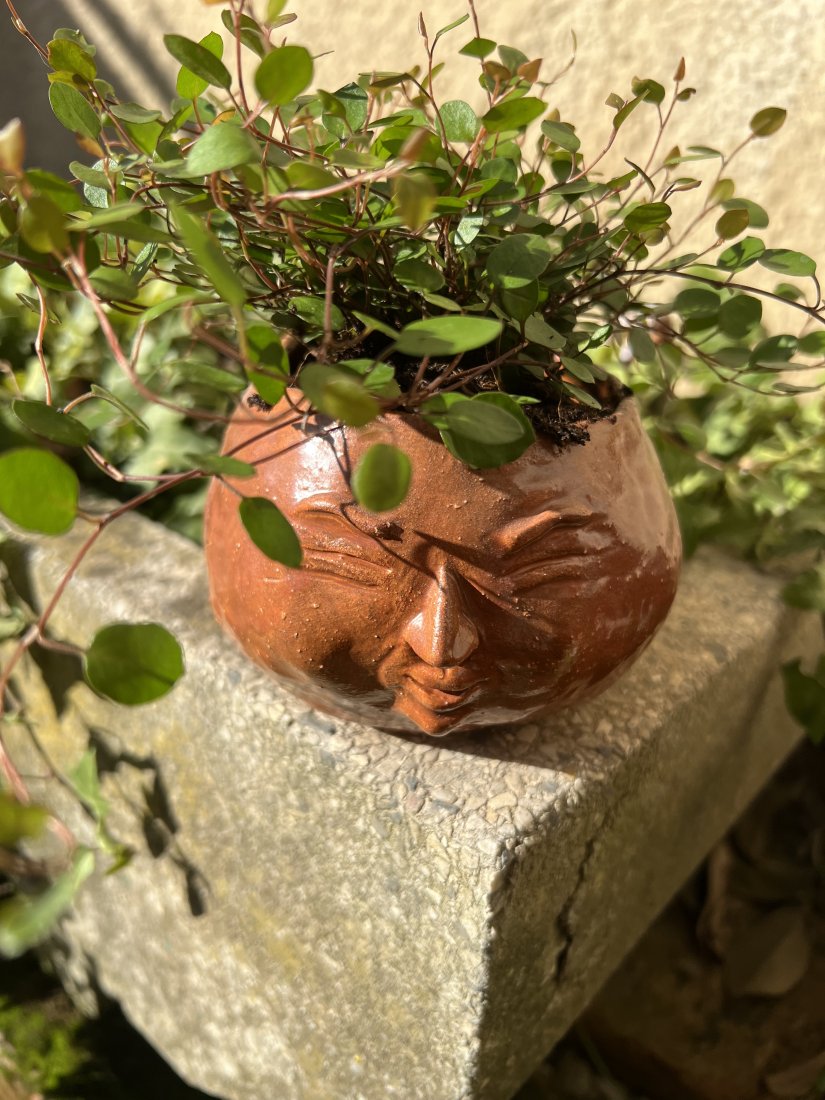 Zabawna doniczka z motywem twarzy, o średnicy 8 cm i wysokości 7 cm. Doskonale nadaje się do sadzenia małych sukulentów i kaktusów. Może być również używana jako wazon na suszone kwiaty lub pojemnik na drobiazgi. Pokryta szkliwem wolnym od szkodliwych substancji.