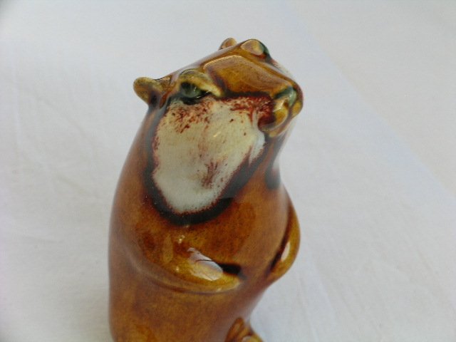 Wyjątkowa porcelanowa figurka pręgowca amerykańskiego (chipmunk). Bardzo poważnie czujny to osobnik :) Ciekawe rozlewane szkliwienie, błyszcząco wykończone. Lekka, pusta w środku. 4,5 x 4 x 9 cm. Stan zachowania bardzo dobry.