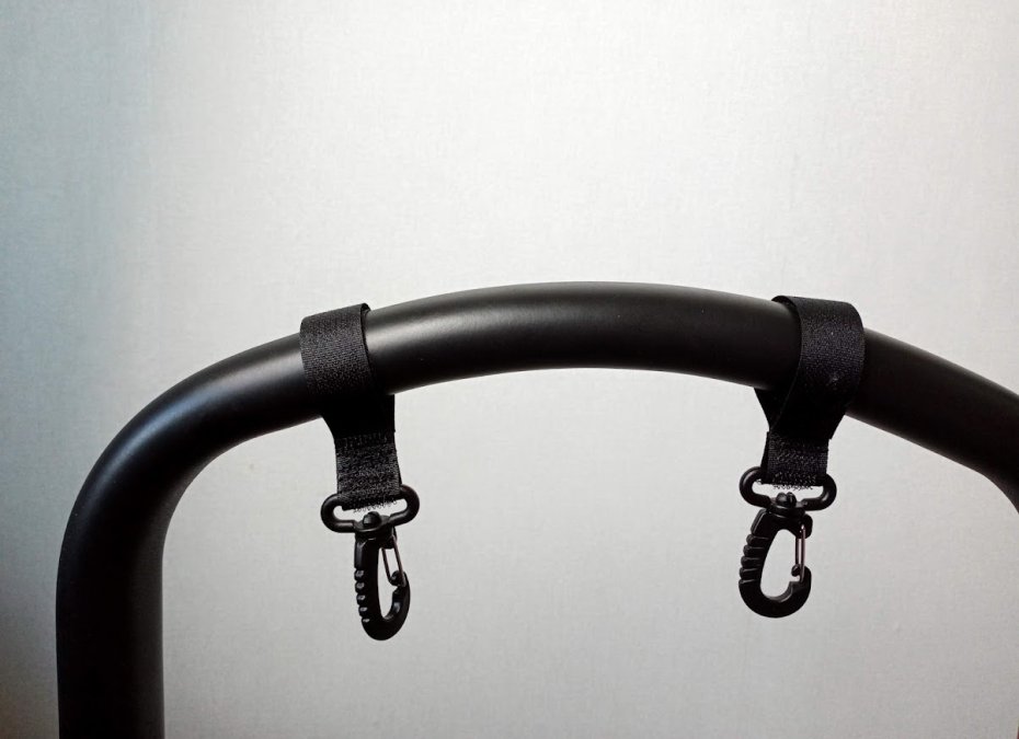 Komplet -2 szt. zaczepów do torby do wózka wykonane z taśmy rzep . Uniwersalne, pasują do każdego rodzaju wózka. Inwalidzkiego również. Zaczepy bardzo łatwo się montuje. Wystarczy owinąć pałąk i zapiąć rzepy.
