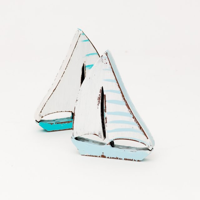 Drewniana żaglówka, ręcznie malowana- ciekawy dodatek do wystroju wnętrza dla dużych i małych.