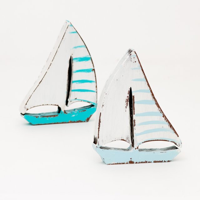 Drewniana żaglówka, ręcznie malowana- ciekawy dodatek do wystroju wnętrza dla dużych i małych.