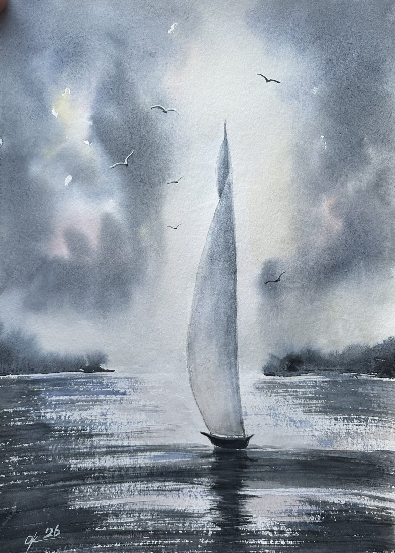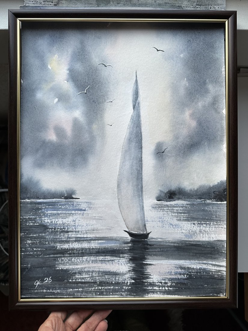 Tagi: #akwarelowy krajobraz, #original akwarela, #regaty morskie, #Żaglówka na morzu
