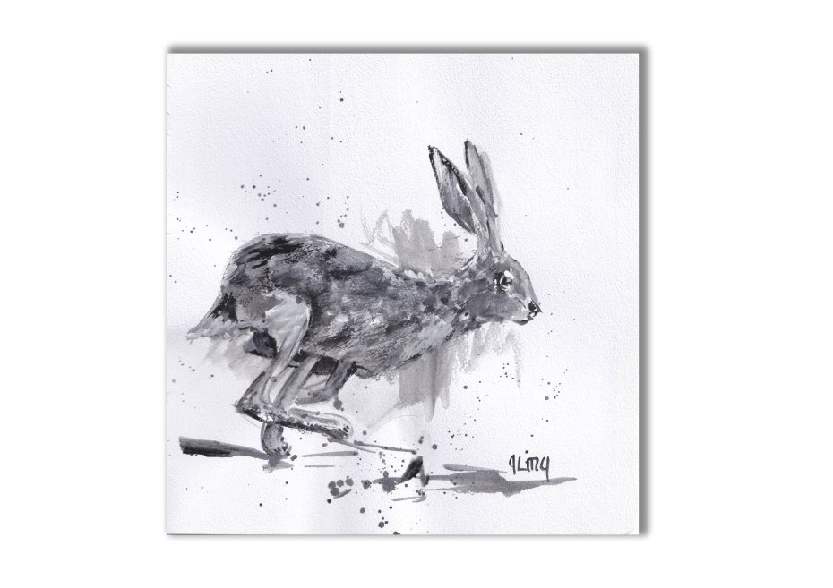 Obraz ręcznie malowany, wykonany w technice mieszanej; na białym, wysokogatunkowym papierze.