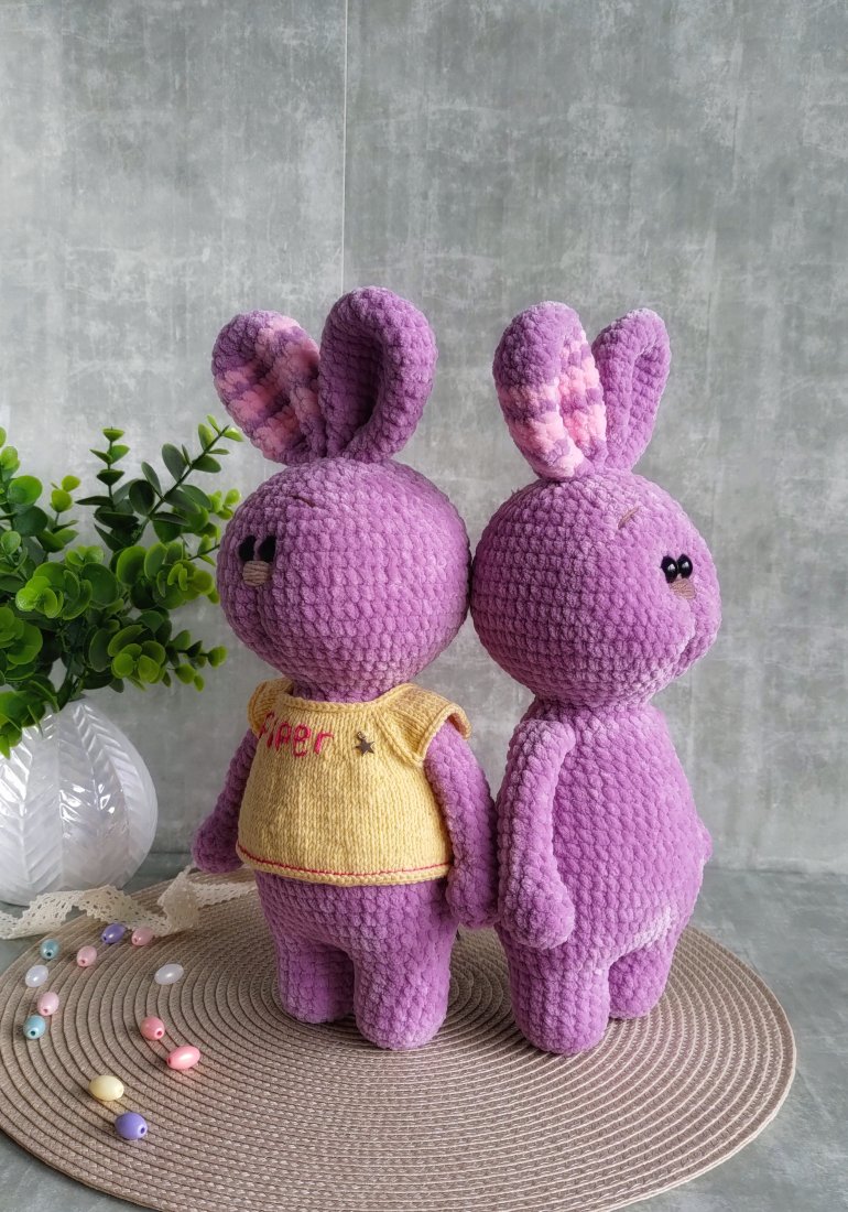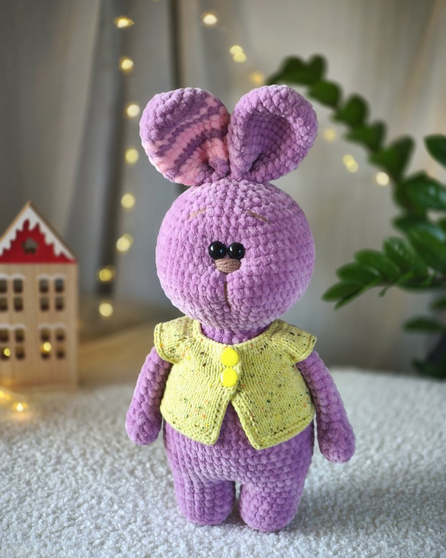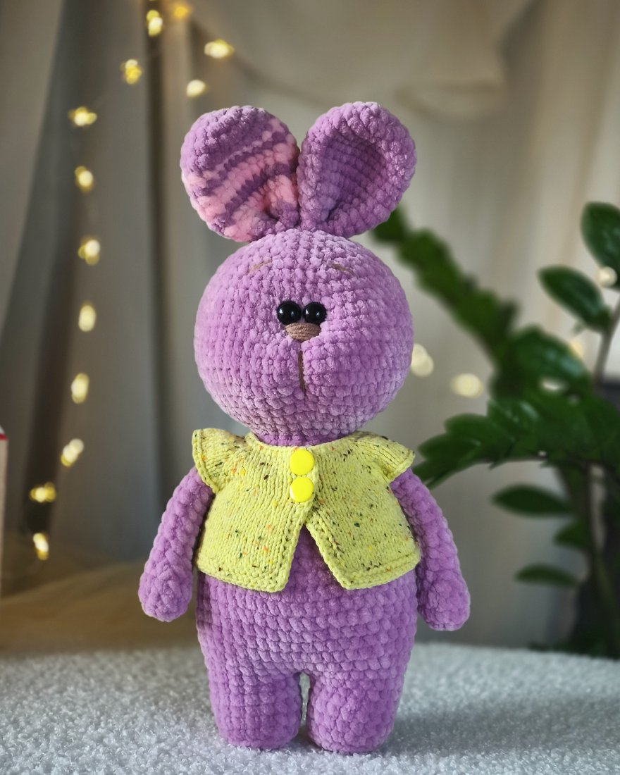 Uroczy zajączek pluszowy wykonany na szydełku to idealny prezent dla dziecka lub dorosłego człowieka na wiele różnych świąt!