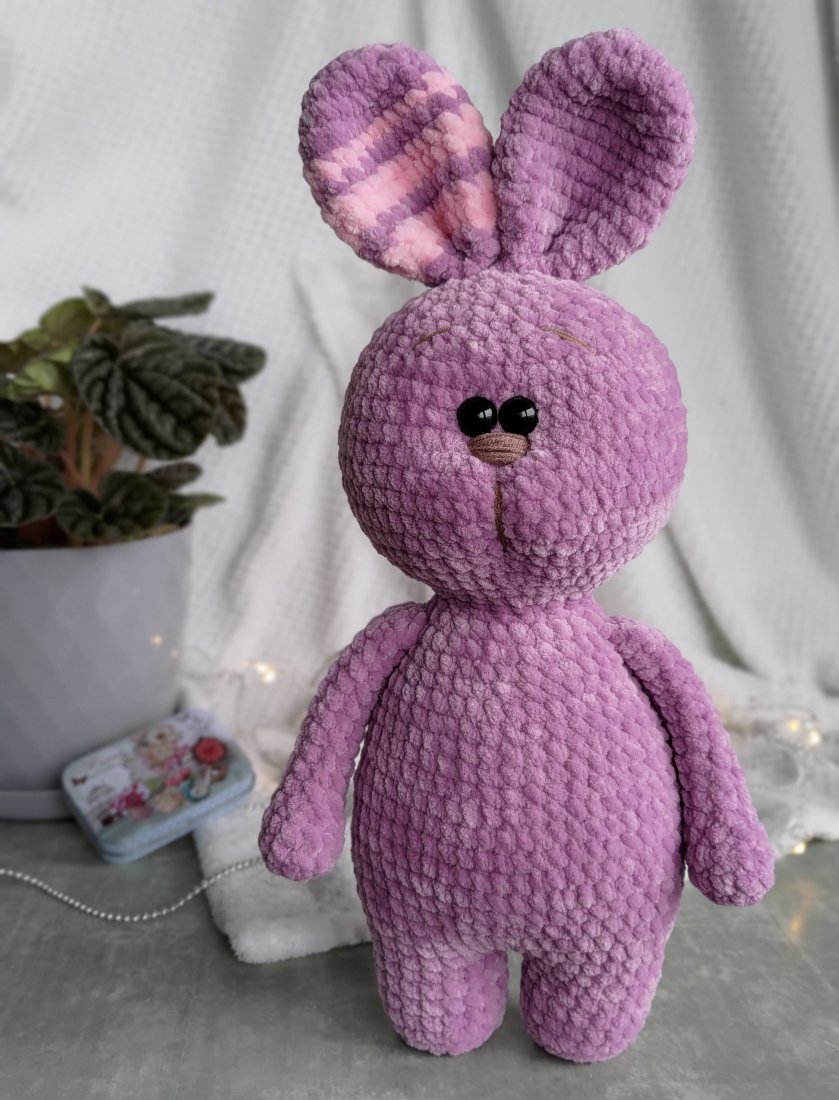 • Króliczek jest wykonany z miękkiej i przytulnej włóczki pluszowej, która posiada Certyfikat Oeko-Tex.