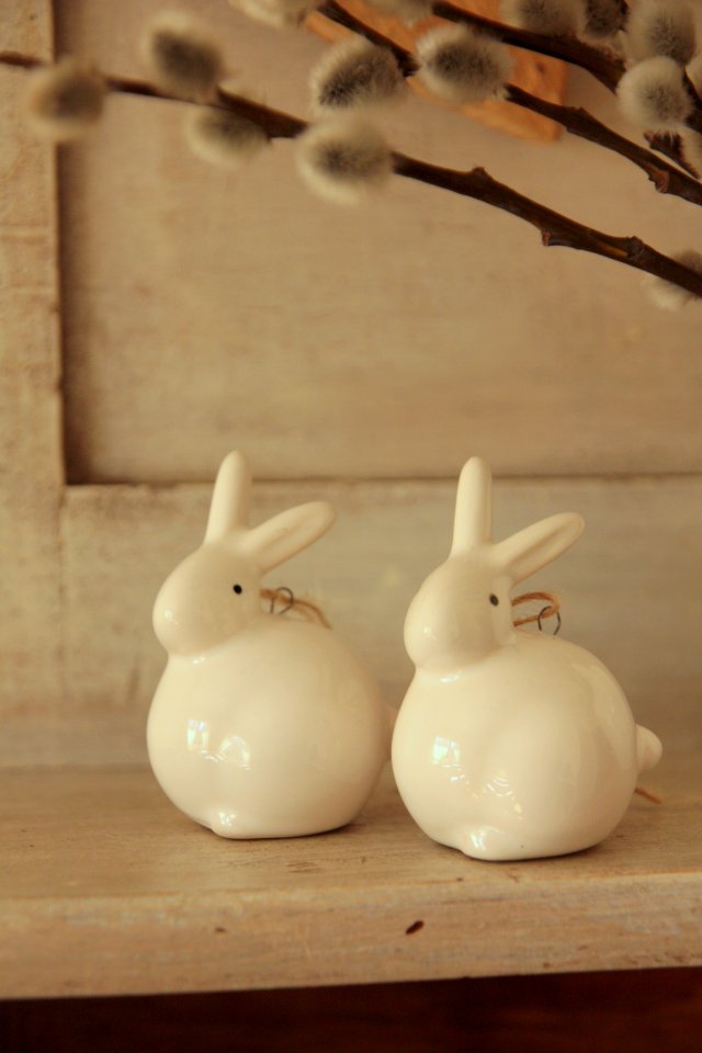 Uroczy, biały ceramiczny zajączek do zawieszenia:) Idealny na Wielkanoc, może być niezobowiązującym upominkiem!