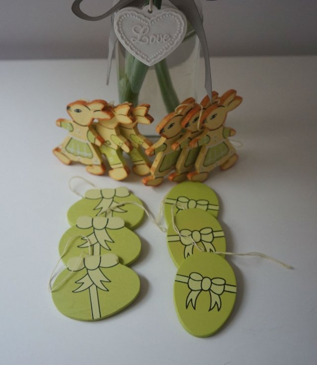 Urocze zawieszki wielkanocne. Wykonane z drewna , w oryginalnym opakowaniu. Będą piękną ozdobą świąteczną.