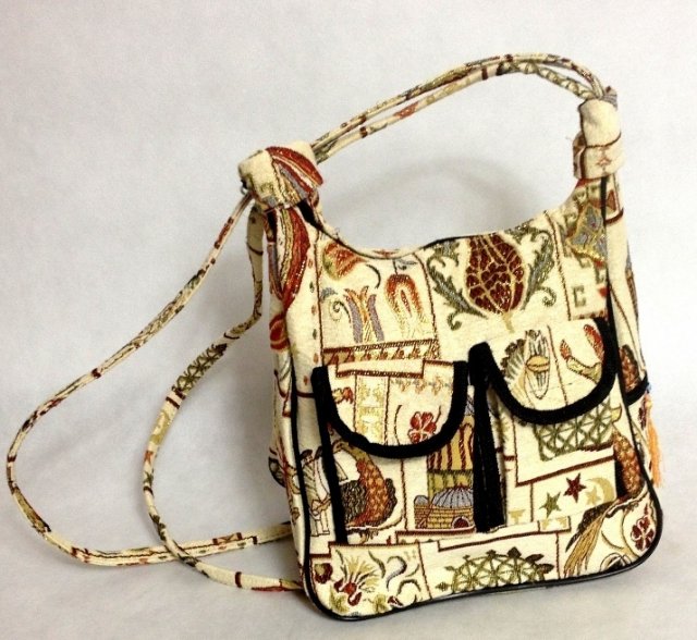 Zjawiskowa torba wykonana z grubszego trzymającego formę żakardu do noszenia na ramię, zasuwana na suwak, z boku kieszonka na suwak, z przodu dwie komory na rzep, z boku przy frędzlach malutka kieszonka na suwak. Torba jest przepiękna, w różnego rodzaju printy.