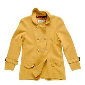 Nowy żakiet w kolorze żółto-złotym z ozdobnymi guzikami, rękaw 3/4, zapinany dwurzędowo.