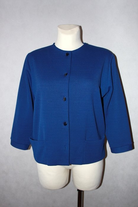 krótki żakiet vintage zapinany na guziki, ciekawa faktura materiału, w dotyku jakby chropowata, rękawy 3/4, dwie małe kieszonki