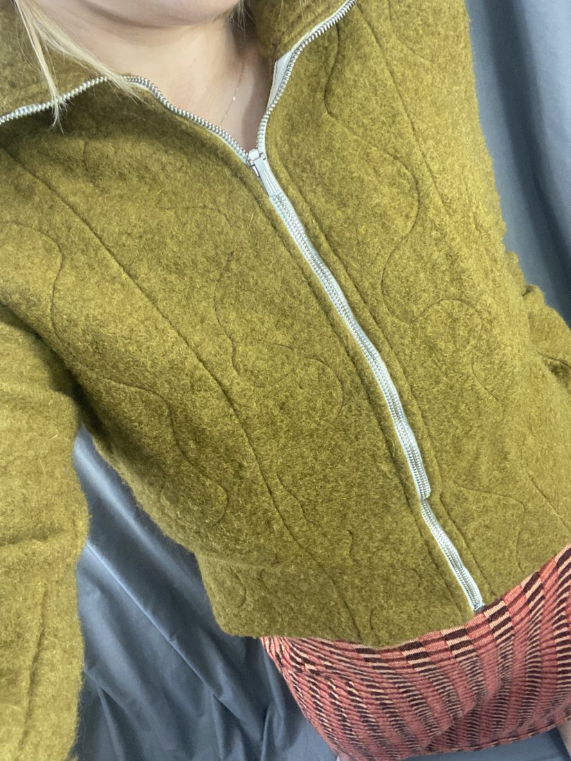 Żakiet z parzonej wełny. Zapinany na zamek.