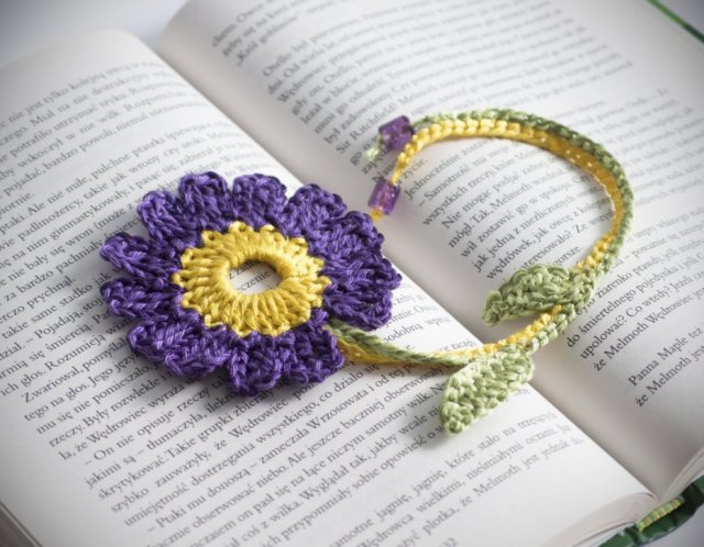 Urocza zakładka do książki- kwiatuszek, zrobiony na szydełku.