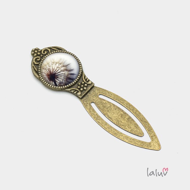 Ręcznie robiona zakładka do książki z wysokiej jakości grafiką zamkniętą pod wypukłym szkiełkiem i oprawioną w bazę w kolorze antycznego złota.